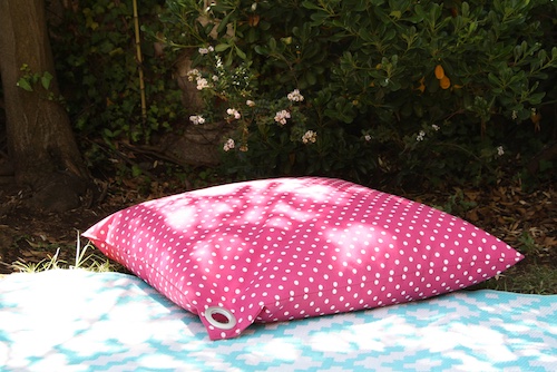 Cojín de 90 por 90 cm de género lavable y repelente al agua, especialmente diseñado para que disfrutes de tu terraza o balcón de manera cómoda. Sirve también para ponerlo en la orilla de la piscina y recostarse un rato al salir del agua.