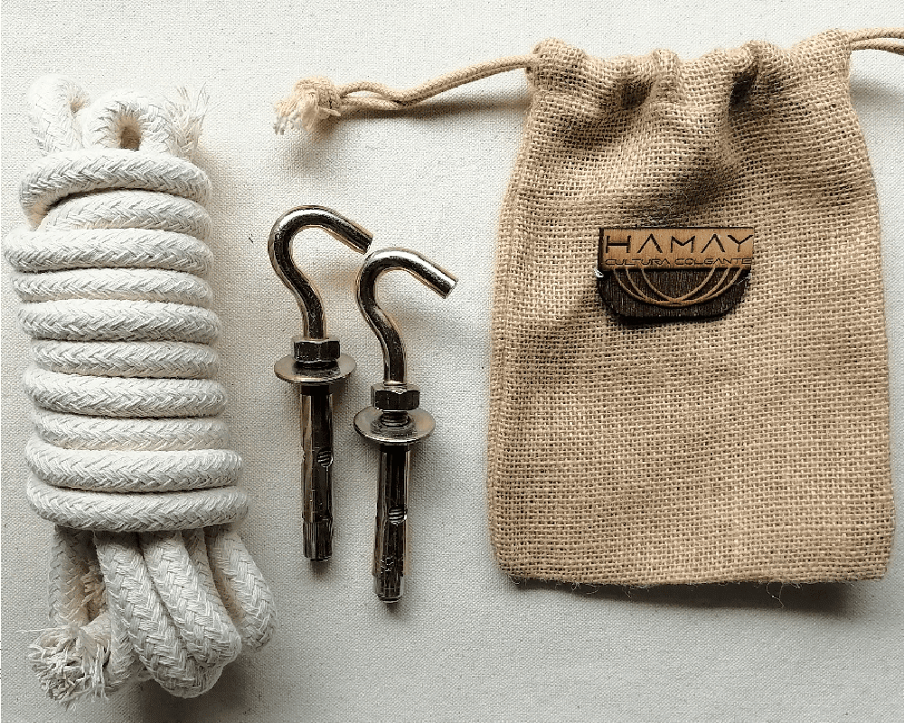 Incluye el kit de instalación con sujeciones y cuerdas para que puedas colgarla tú mismo/a, junto a un bolso reutilizable de yute orgánico. Si requieres que nosotros vayamos a instalarla, selecciona la opción con instalación.