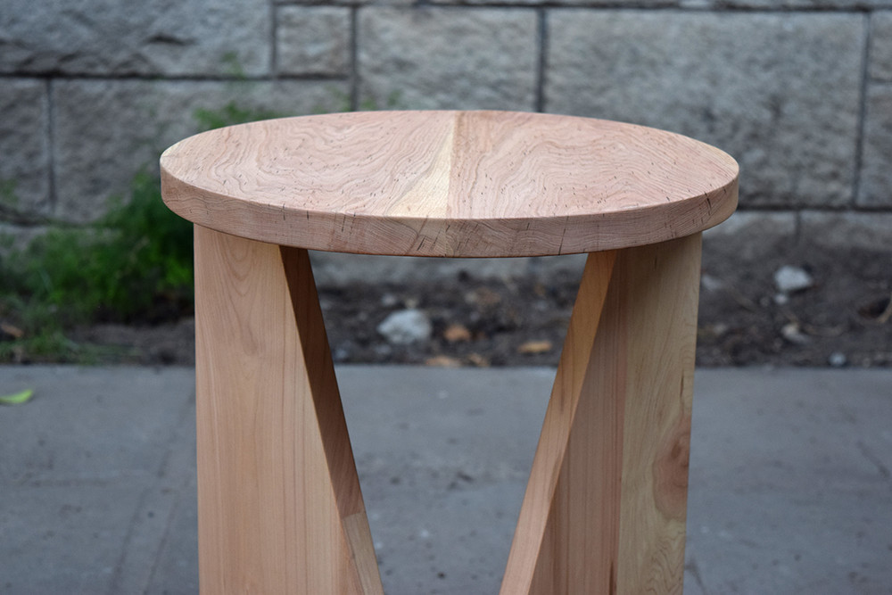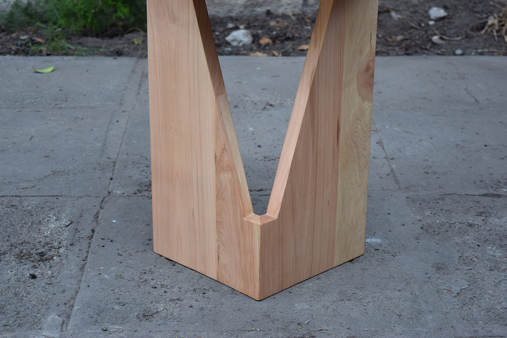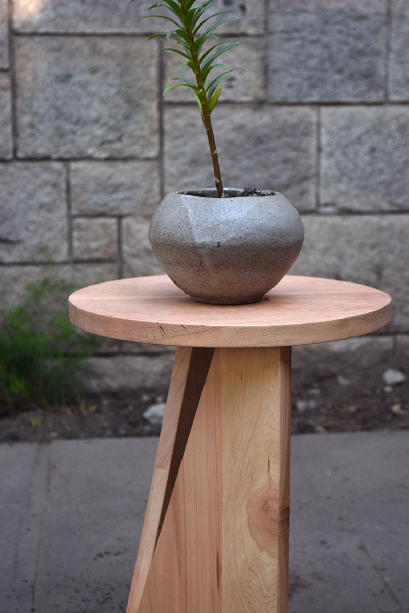 Elegante y sobrio piso hecho en madera de lenga por Muebles Albura. Tiene la gracia de que también se puede usar como mesa lateral.