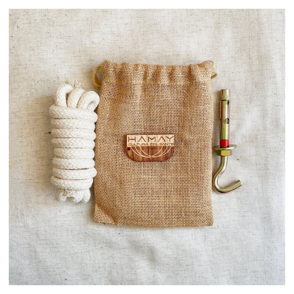 Incluye el kit de instalación con sujeciones y cuerdas para que puedas colgarla tú mismo/a, junto a un bolso reutilizable de yute orgánico. Si requieres que nosotros vayamos a instalarla, selecciona la opción con instalación.