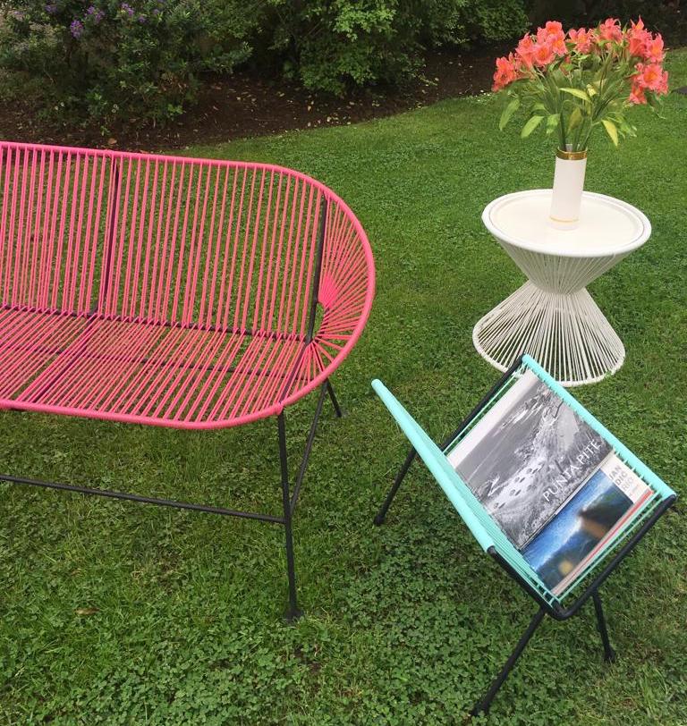 Cada pieza es única. La estructura es de fierro sólido electropintado negro o blanco (la pintura es anticorrosiva y antibacterial) y el asiento y respaldo están conformados por un tejido con cuerda de PVC con protección UV. Por lo tanto, es la silla perfecta para tu terraza (y para cualquier lugar de tu casa en realidad).