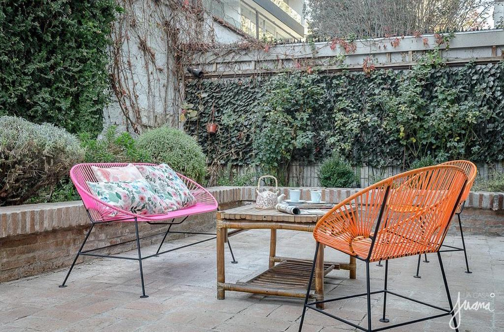Sillón de 2 cuerpos compacto y cómodo, ideal para terrazas de tamaños reducidos.