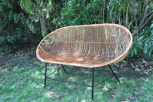 Sencillo y bello sillón de mimbre con palitos que le otorga calidez a cualquier terraza. Se recomienda usar bajo techo.