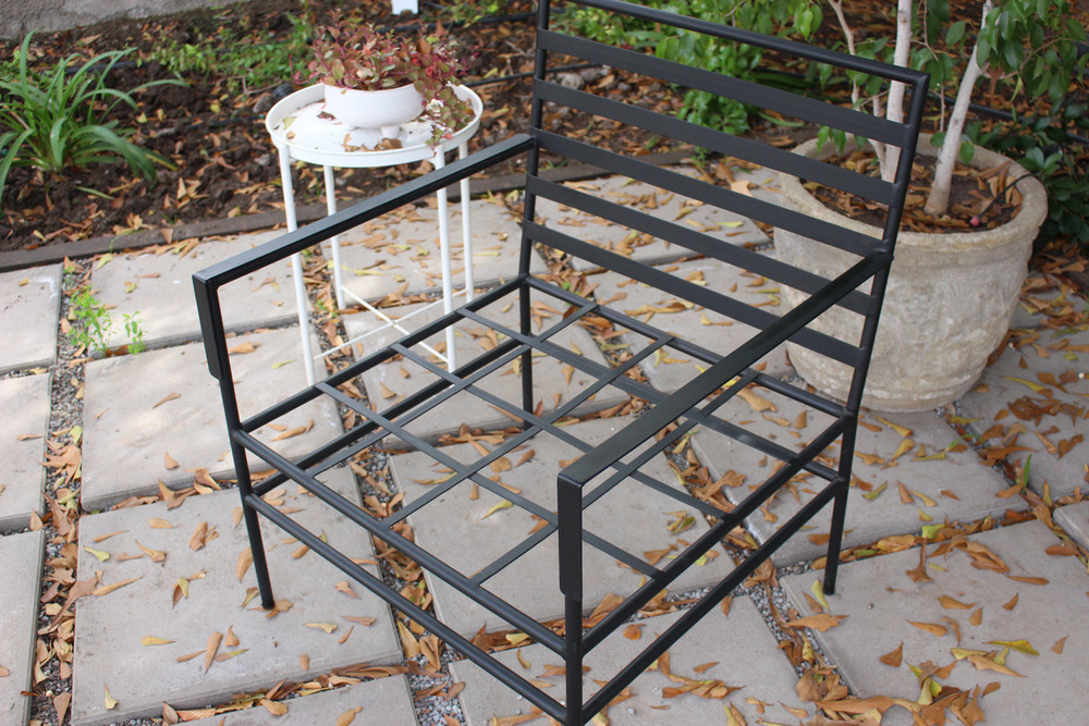 Lindo y elegante sitial de un cuerpo en estructura de fierro de perfil circular, con apoyabrazos. Electropintado en color negro, aunque es posible pintarlo en blanco, dorado u otro color por un valor adicional.