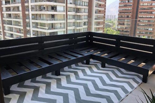 Sofá en L fabricado con madera de pallets reciclados.